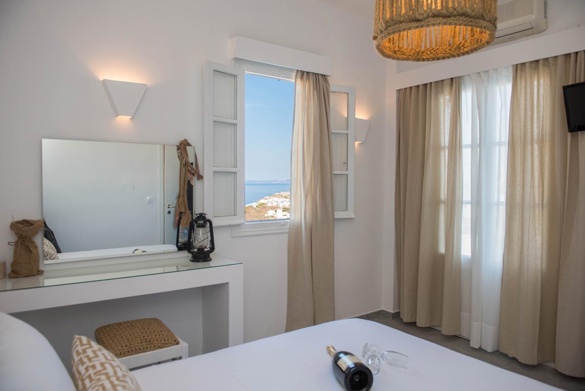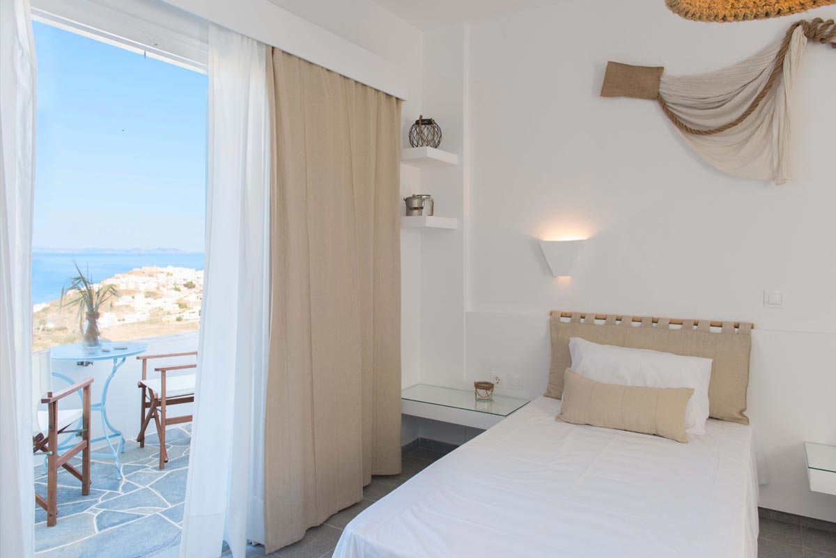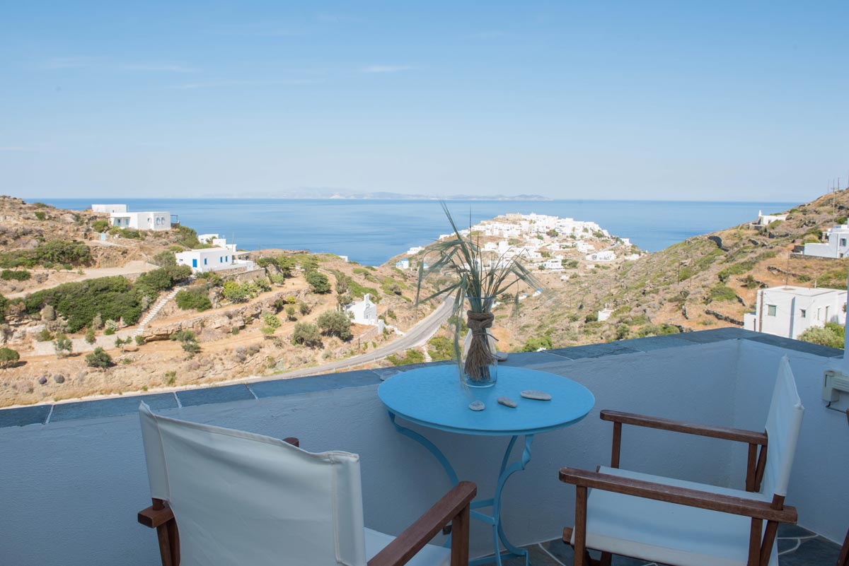 Από το μεγάλο μπαλκόνι σας μπορείτε να απολαύσετε την ηρεμία του περιβάλλοντος, τη θέα στο καταγάλανο Αιγαίο και στο Κάστρο που θα σας συναρπάσει.